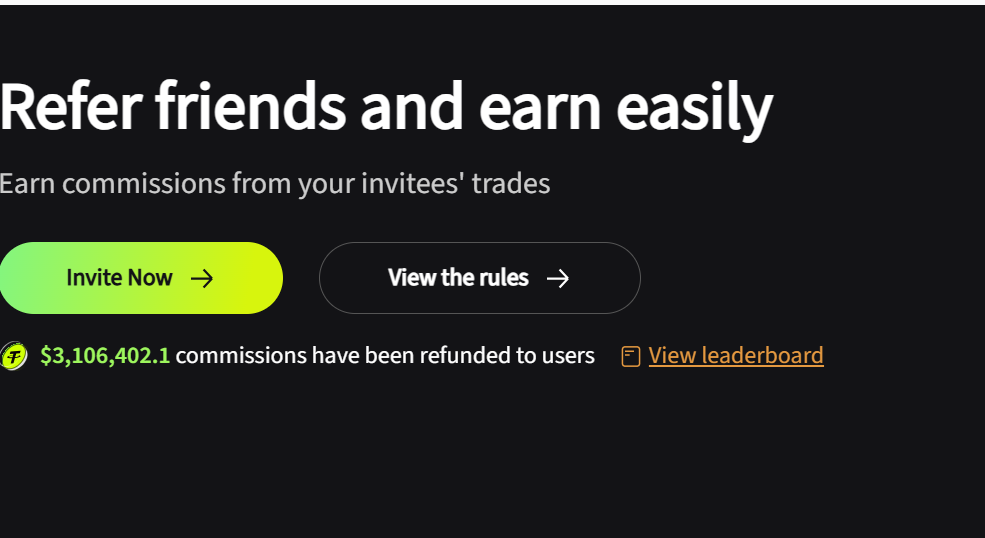 - When your friends register and start trading using your referral code, you’ll earn commissions based on their trading fees.